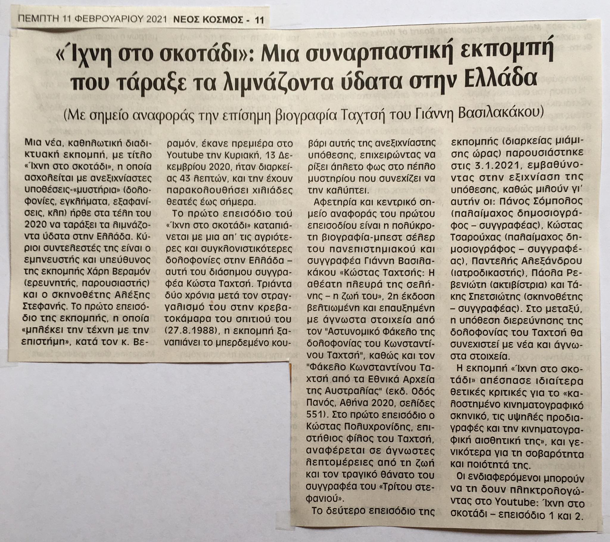 Μία νέα διαδικτυακή εκπομπή για ανεξιχνίαστα εγκλήματα και εξαφανίσεις η οποία βασίζεται στην έρευνα, στην ανεξάρτητη ενημέρωση και στην κινηματογραφική αισθητική. Ο Χάρης Βεραμόν μιλάει για αυτή την ιδέα – ένα χειροποίητο εγχείρημα χωρίς χρηματοδότες-, για τη μέχρι τώρα πορεία της εκπομπής, αλλά και για τις άγνωστες υποθέσεις με τις οποίες θα ασχοληθεί η ομάδα στο μέλλον.