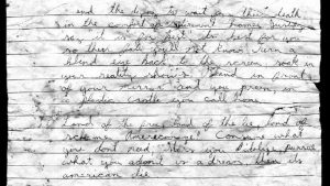 (….δυσανάγνωστες λέξεις….) θα μπορούσα να σε κρατήσω, να σε αφήσω να είσαι ο αφέντης της δικιάς σου μοίρας.. Γνωρίζοντας πλήρως τι διακυβεύεται; Όμορφη μου αιχμάλωτη πεταλούδα, πολύχρωμα φτερά λεκιάζουν το χέρι μου, κάπως θα ξαναζωγραφίζω με τιμωρία και δάκρυα.